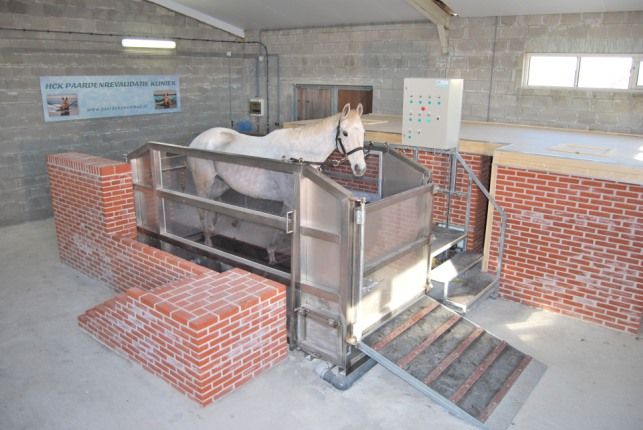 Onze dressuustal staat om meer bekend dan de dressuurruiters die hier worden opgeleid, wij beschikken namelijk ook tot een aqua-training en een gespecialiceerd team. Een Aqua-training is bedoeld voor paarden die gewricht of rug klachten hebben, voor paarden die sterke spieren moeten krijgen, soms voor paarden die niet lekker in hun vel zitten en natuurlijk voor paarden die hoog opgeleid worden in de wedstrijdsport. Een Aqua-training is een week of langer waarbij uw paard op onze stal staat en elke dag een trainingsschema heeft die gebasseerd is op de wensen van de klant en een van de medewerkers van ons team. Tijdens een Aqua-training worden onderstaande dingen gedaan (lees verder op deze pagina) en er word soms verder nog op het paard gereden en getraind door u zelf of een van onze ruiters. Natuurlijk kan een paard ook langer dan een week Aqua-training bij ons volgen en bij uiterste gevallen doet een paard soms wel een half jaar Aquatraining. U kunt dan natuurlijk buiten de speciale trainingen om nog gewoon rijden op uw paard, uw paard staat dan alleen hier. We hebben plek voor ongeveer 5 paarden, dus wanneer u een Aqua-training aanvraagt zou het kunnen dat u een tijdje op de wachtlijst staat.