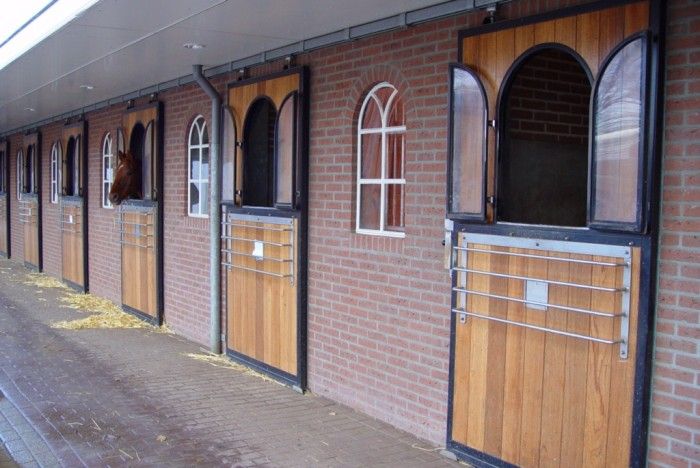 De stallen hebben aan de voorkant tralies met in het midden een luik die helemaal open kan. De zijkanten zijn gesloten en aan de achterzijde zit een raam dat ook helemaal open kan. Zo hebben de paarden veel ruimte en kunnen ze van alles zien. De stallen behoren bij ons meest luxe pension aanbod. De stallen worden daarom elke dag uitgemest en de hal word enlke dag geveegd. Op zondag word alles nog extra goed schoongemaakt. Het blok bied plaats voor 15 paarden, en de stallen zijn elk 3,5 m x 4 m.